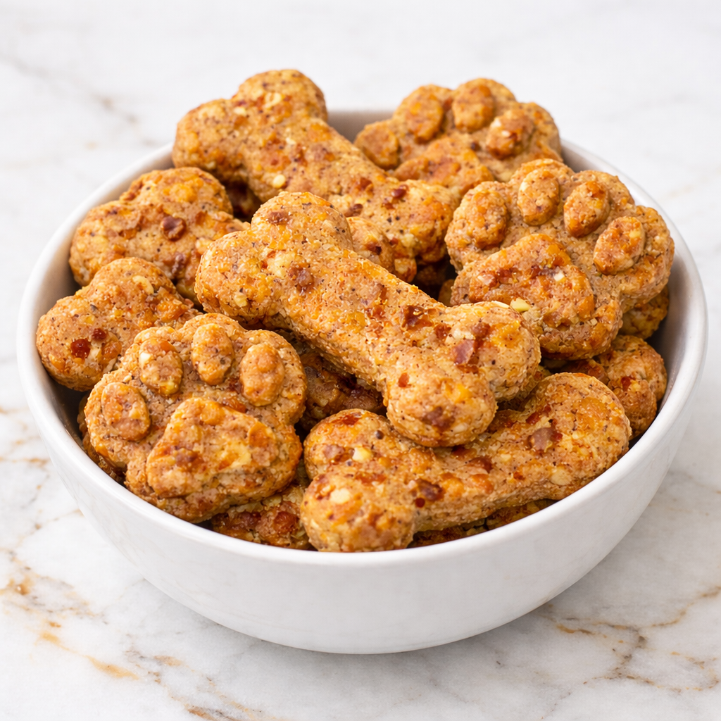 These bacon and cheese biscuits offer more than just bold flavor—they provide protein and fat to support energy and healthy coat condition.