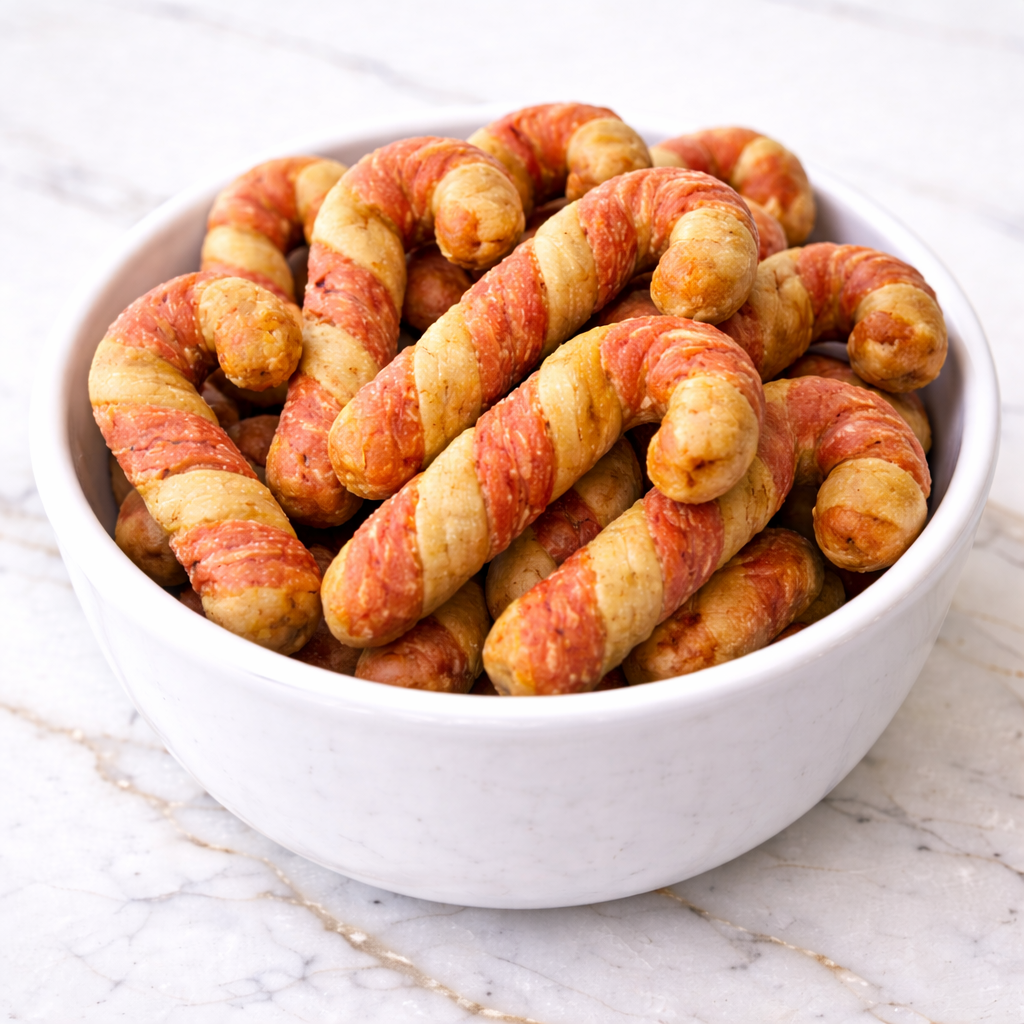 When the holidays roll around, it’s hard not to get swept up in all the baking, decorating, and festive treats. And while most holiday sweets aren’t dog-friendly, these Candy Cane Shaped Dog Treats let your pup join the fun safely. Made with wholesome ingredients and no sugar, these red-and-white swirled biscuits look festive but are completely natural and healthy.
