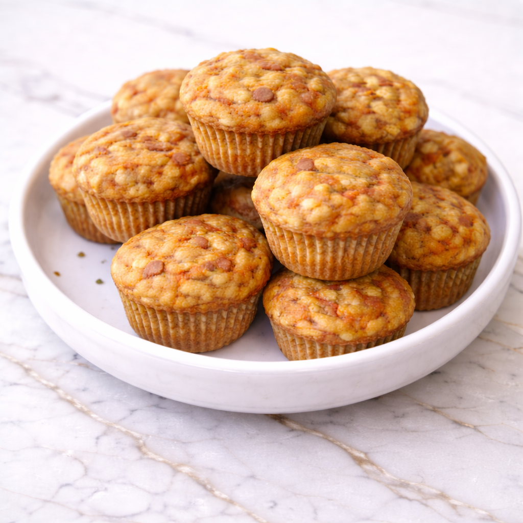 They’re naturally sweetened with banana and applesauce, lightly spiced with cinnamon, and dotted with shredded carrots for texture. Perfect as a Christmas breakfast for dogs or a holiday gift for your furry friends, these muffins are wholesome, hearty, and irresistibly aromatic.
