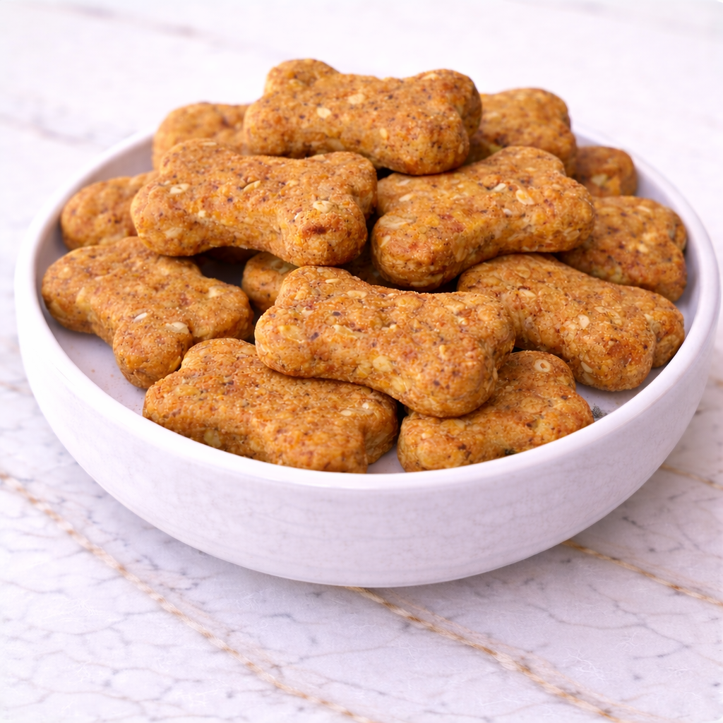 They’re naturally sweetened with banana and molasses, lightly spiced with cinnamon and ginger, and finished with that classic gingerbread aroma that fills the house with warmth. Perfect for baking during the holidays, gifting to fellow dog parents, or sneaking into your pup’s stocking on Christmas morning.