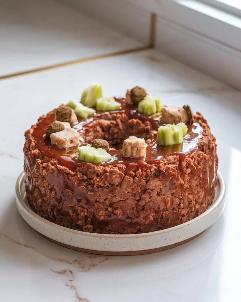 Perfect for dogs who aren’t fans of sweet treats or for pet parents who want to serve something closer to a meal than a dessert, this cake is both practical and party-worthy. It’s shaped and decorated just like a traditional birthday cake but filled with ingredients that are packed with nutrients, flavor, and tail-wagging approval.