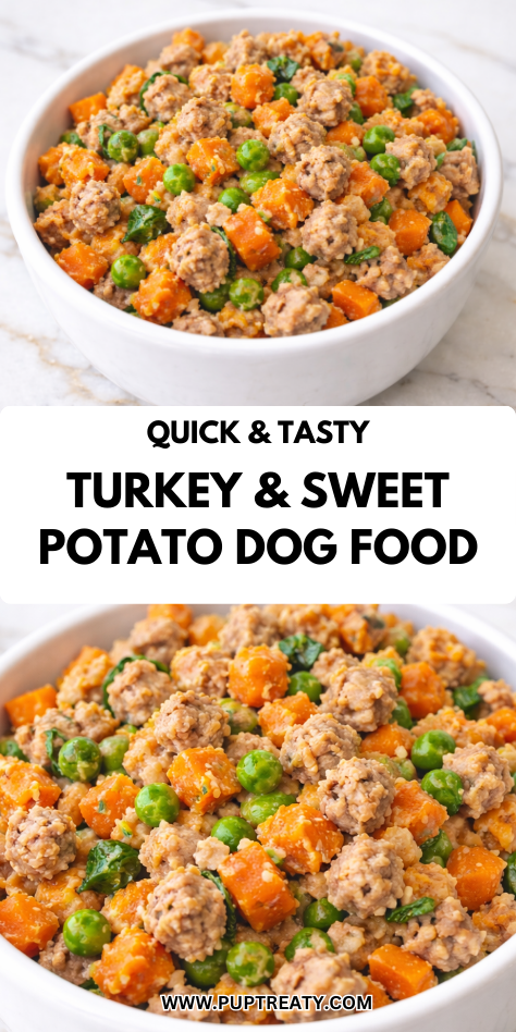 Lean ground turkey provides a highly digestible source of protein, while sweet potatoes add a naturally sweet, fiber-rich carbohydrate.